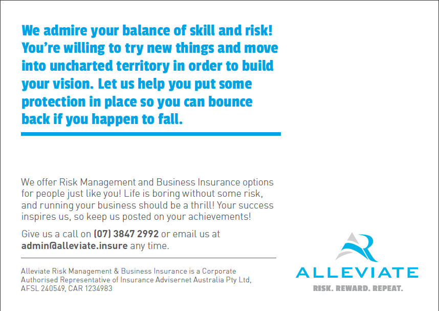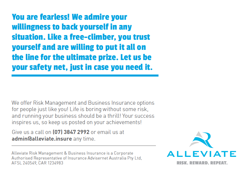 Alleviate offer insurance for entrepreneurs, so not only is there an element of risk implicit, it’s actually encouraged. Coming from an entrepreneurial background themselves, Alleviate champion calculating – not eliminating – risk.