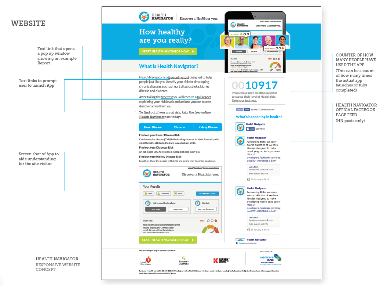 Our single page website for healthnavigator.com.au will give insight into what is Health Navigator and what it can do for you while driving the action of ‘starting’ an actual assessment.