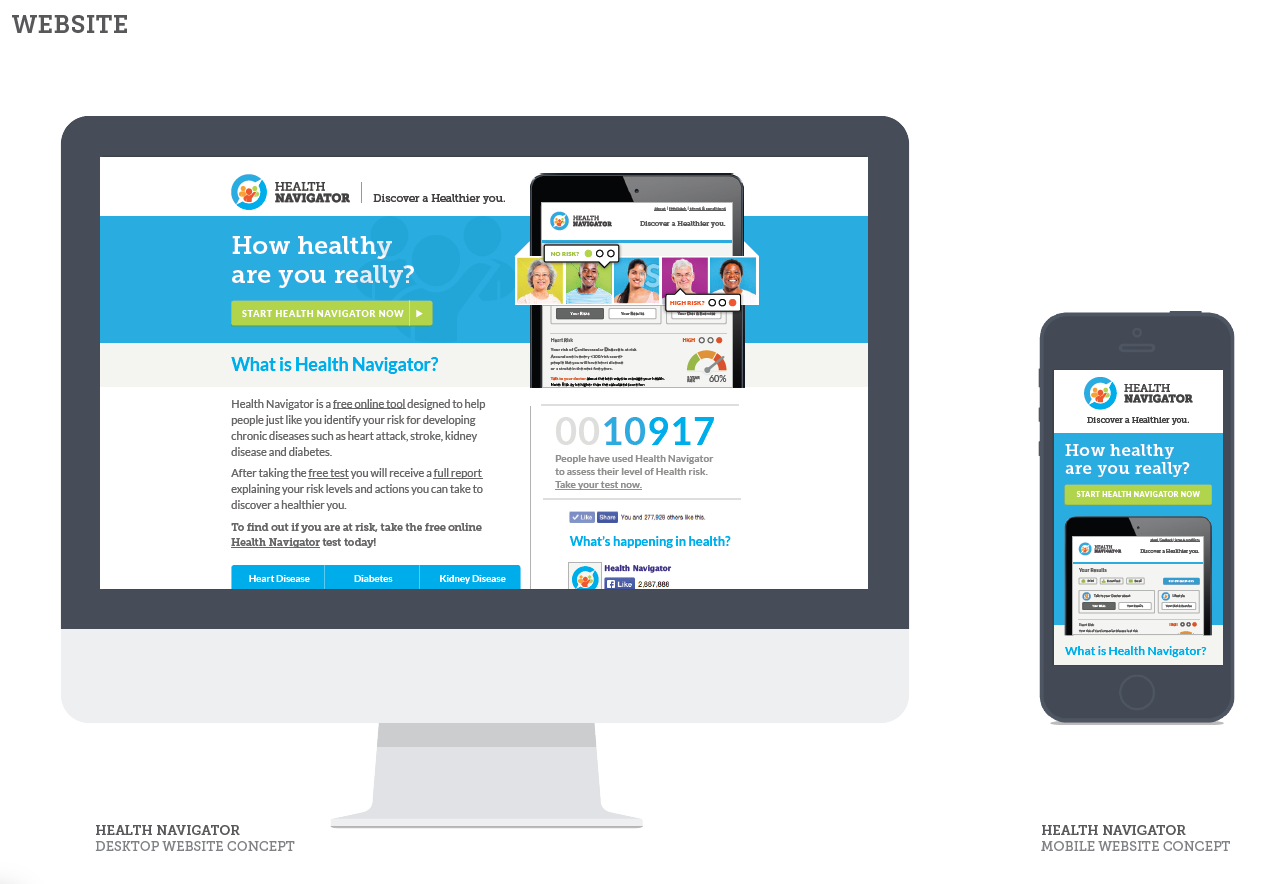 The proposition of ‘How healthy are you really?’ is relevant to all demographics regardless of ethnicity or social standing. It forces us to consider the ‘answer’ in our mind, based on our individual self-assumptions and ignorances about our own health, and then proposes that the ‘real truth’ can be easily discovered by using the Health Navigator tool. The choice to ‘discover a healthier you’ is a simple one, and with the right messages delivered with the right mix of media, so it will be so for the wider public and our specific target groups.